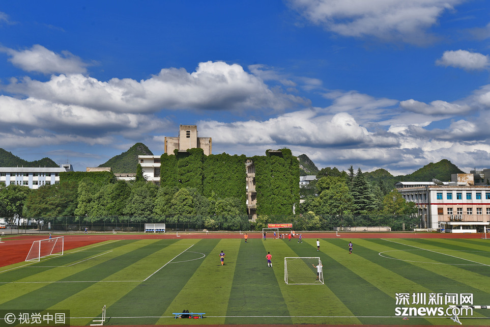 貴陽一大學現(xiàn)12層樓50米高綠色“巨瀑” 300棵植被覆蓋2000平墻體