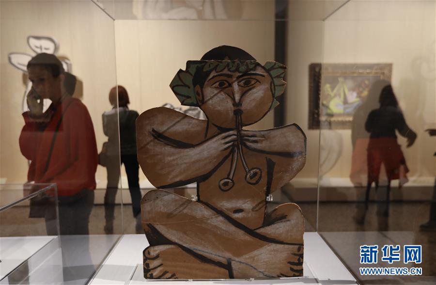 這是10月24日在意大利米蘭“畢加索·變形記”展上拍攝的畢加索作品《坐著的音樂(lè)家》。 新華社記者程婷婷攝