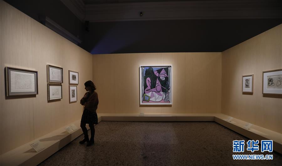 10月24日,在意大利米蘭,一名女子參觀“畢加索·變形記”展。 新華社記者程婷婷攝