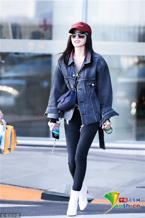 2018年10月24日,北京,“富察皇后”秦嵐現(xiàn)身機(jī)場(chǎng)。她頭戴小紅帽,身穿黑色緊身褲顯美腿筆直修長(zhǎng),上身穿著牛仔外套青春逼人,邊走邊甜笑玩“撩發(fā)殺”,靚麗吸睛。