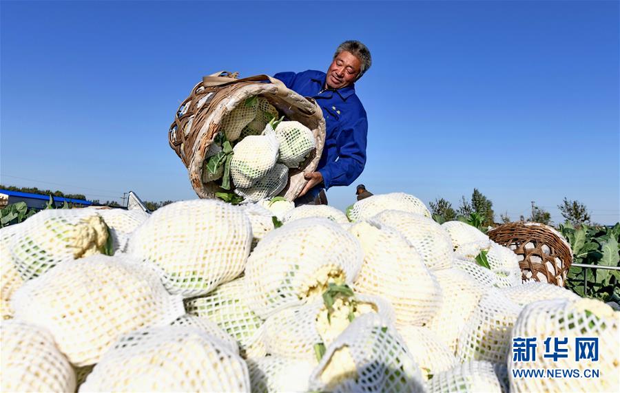 10月29日,樂亭縣馬頭營鎮(zhèn)馬頭營村的農(nóng)民在收獲菜花。 新華社記者楊世堯攝