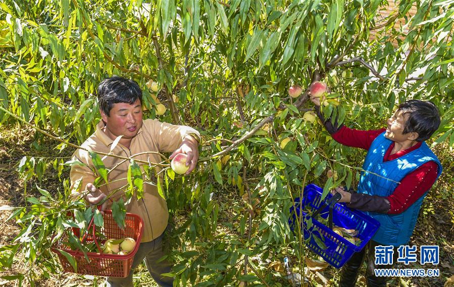 10月29日,河北省故城縣盛嘉莊園的工作人員在采摘冬桃。 新華社記者 李曉果 攝