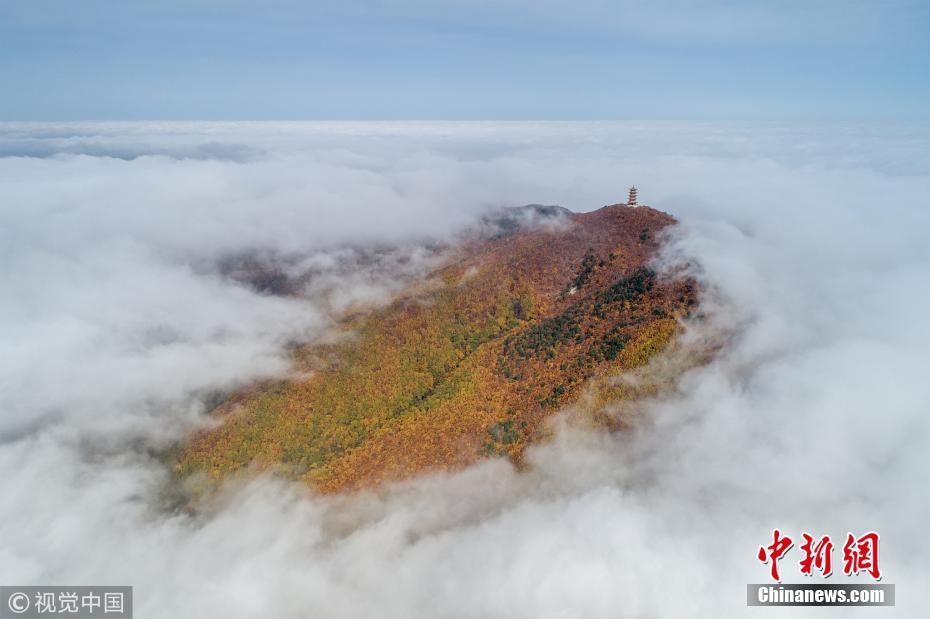 10月6日晨曦到中午,黑龍江雞西,中俄界湖興凱湖北岸蜂蜜山國家地質公園,再現(xiàn)云海為長假收關。 圖片來源:視覺中國