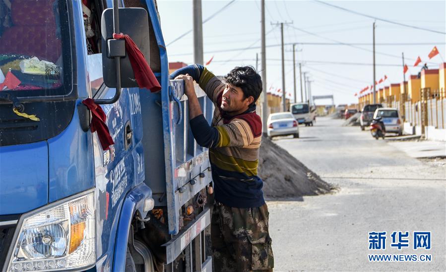 10月28日,買(mǎi)合肉甫·木拉吧在小兒子的幫助下裝運(yùn)貨物。 新華社記者 關(guān)俏俏 攝