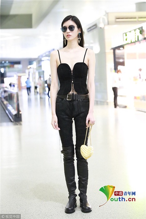 2018年7月25日,上海,奚夢(mèng)瑤現(xiàn)身機(jī)場(chǎng),她穿吊帶馬甲配過膝長(zhǎng)靴,頻撩發(fā)似女特工。