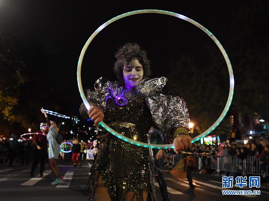 10月31日,在美國(guó)紐約曼哈頓,一名女子參加萬(wàn)圣節(jié)大游行。