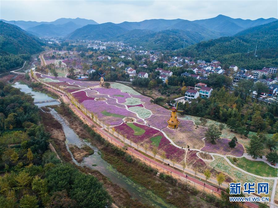 11月2日,空中俯瞰小浦鎮(zhèn)的“五彩花?!保嗖实幕êEc金黃的銀杏林構(gòu)成了一幅美麗的秋季風(fēng)景(無人機(jī)拍攝)。 新華社記者 徐昱 攝