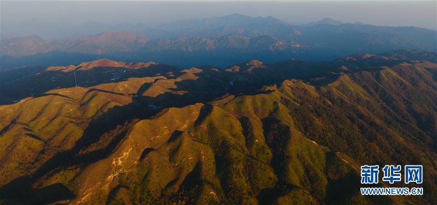 夕陽下的摩天嶺草場(11月2日無人機拍攝)。金秋時節(jié),廣西融水苗族自治縣桿洞鄉(xiāng)堯告村的摩天嶺草場天高云淡,景色迷人。新華社記者周華攝