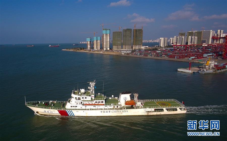 11月3日,“海巡21”輪駛出港口。當(dāng)日,隨著“海巡21”輪緩緩駛離??诤J卤O(jiān)管基地碼頭,由瓊桂粵海事部門共同開展的瓊州海峽、北部灣及環(huán)海南島水域跨轄區(qū)聯(lián)合巡航執(zhí)法活動揭開序幕。新華社記者楊冠宇攝