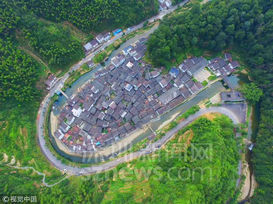 深圳新聞網(wǎng)訊 四面青山環(huán)繞,小河成大半圓形圍繞一周,眼前這個(gè)山環(huán)水繞的小村莊被稱為“中國(guó)最圓的村莊”,沿山間小路建設(shè)的臺(tái)階而上,站在一處觀景臺(tái)往下看,這個(gè)村子的形狀在山水襯托下,宛如一個(gè)圓形的島嶼。