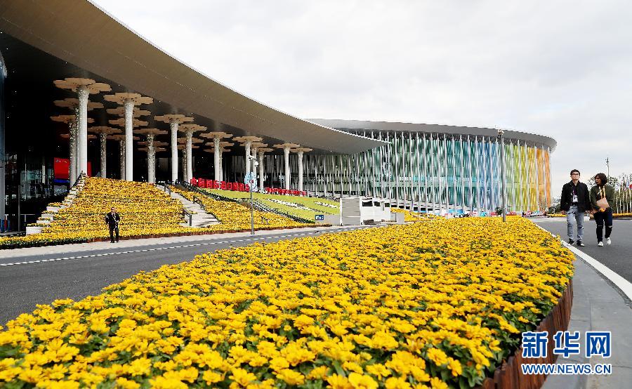 國家會(huì)展中心(上海)擺滿鮮花(11月2日攝)。首屆中國國際進(jìn)口博覽會(huì)即將在上海開幕。美麗的上海張開懷抱,迎接八方來客。 新華社記者 方喆 攝