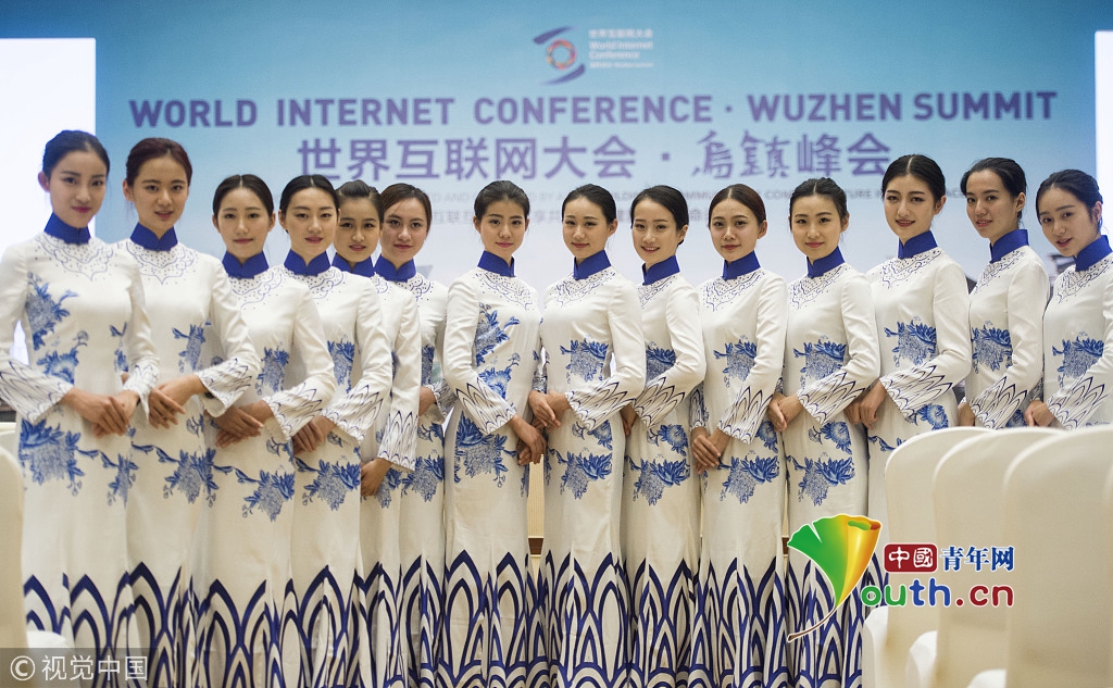 2015年12月14日,浙江嘉興,在烏鎮(zhèn)景區(qū)枕水度假酒店,身著中式青花旗袍的美女禮儀驚艷亮相主會場,成為世界互聯(lián)網(wǎng)大會上一道靚麗的風景。