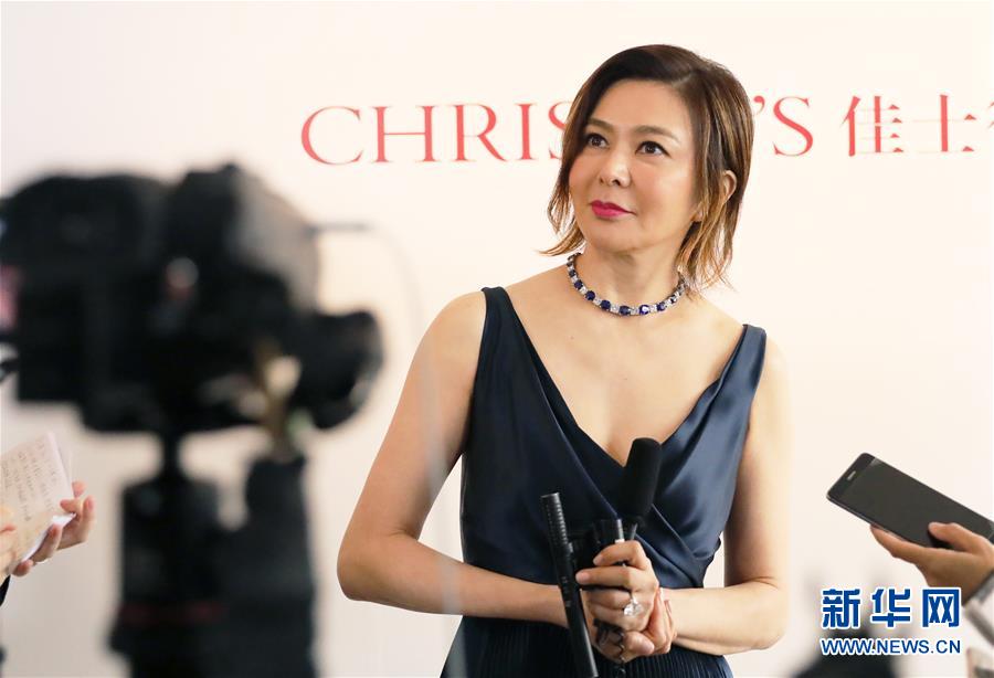 11月5日,香港藝人關(guān)之琳在展示“孔雀”項(xiàng)鏈。