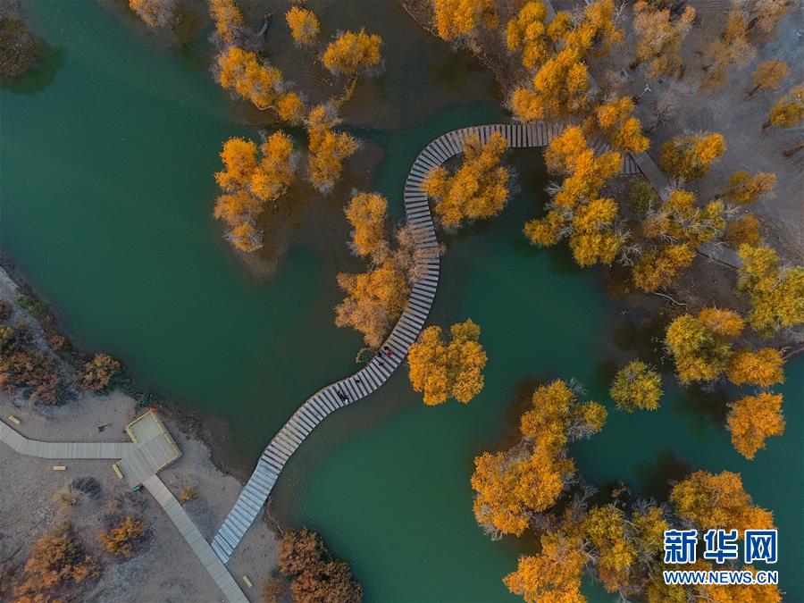 這是在內(nèi)蒙古自治區(qū)額濟(jì)納旗拍攝的胡楊林(10月10日無(wú)人機(jī)拍攝)。 金秋時(shí)節(jié),內(nèi)蒙古自治區(qū)額濟(jì)納旗胡楊林如同披上金裝,成為大漠中的一抹亮色,吸引眾多中外游客前來(lái)觀賞游玩。 新華社記者劉磊攝