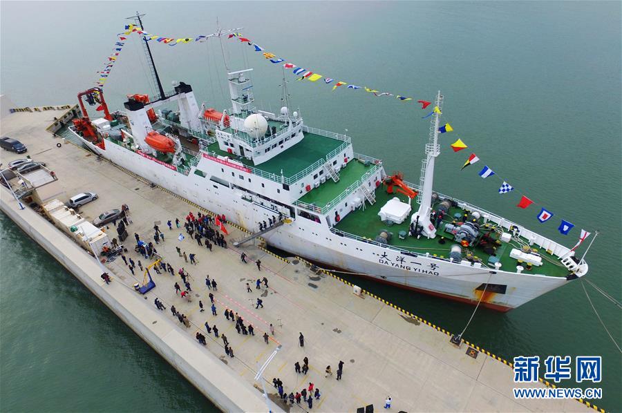 11月7日,“大洋一號(hào)”??吭谇鄭u市嶗山區(qū)的青島海洋科學(xué)考察基地碼頭(無(wú)人機(jī)拍攝)。新華社發(fā)(王海濱 攝)