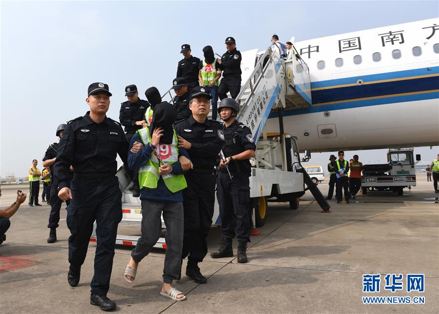 當日,一架從菲律賓起飛的中國民航包機抵達深圳寶安機場,36名利用網(wǎng)絡(luò)刷單實施電信網(wǎng)絡(luò)詐騙的犯罪嫌疑人被集中押解回國。涉及全國多個?。▍^(qū)、市)的700余起電信網(wǎng)絡(luò)詐騙案宣布告破,涉案金額1800余萬元。 新華社記者毛思倩攝