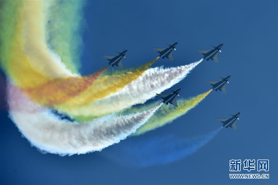 11月6日,中國空軍八一飛行表演隊(duì)在航展現(xiàn)場進(jìn)行飛行表演。當(dāng)日,第十二屆中國國際航空航天博覽會在珠海開幕。 新華社記者鄧華攝