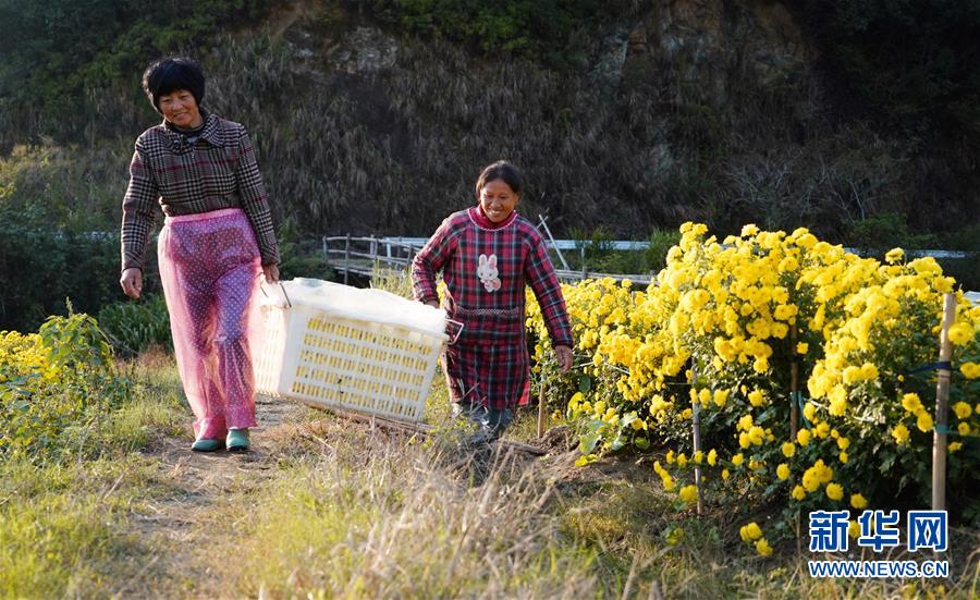 11月8日,婺源縣思口鎮(zhèn)農(nóng)戶在采摘皇菊。