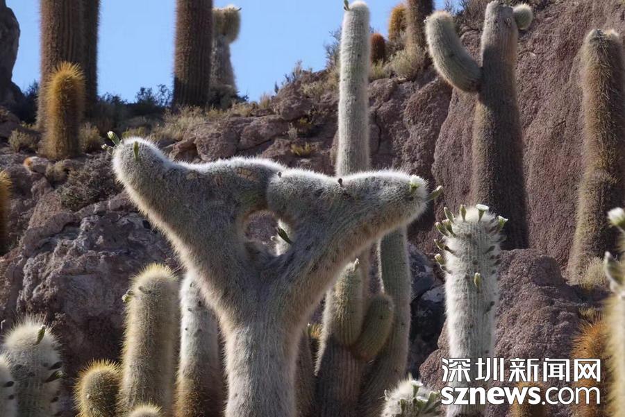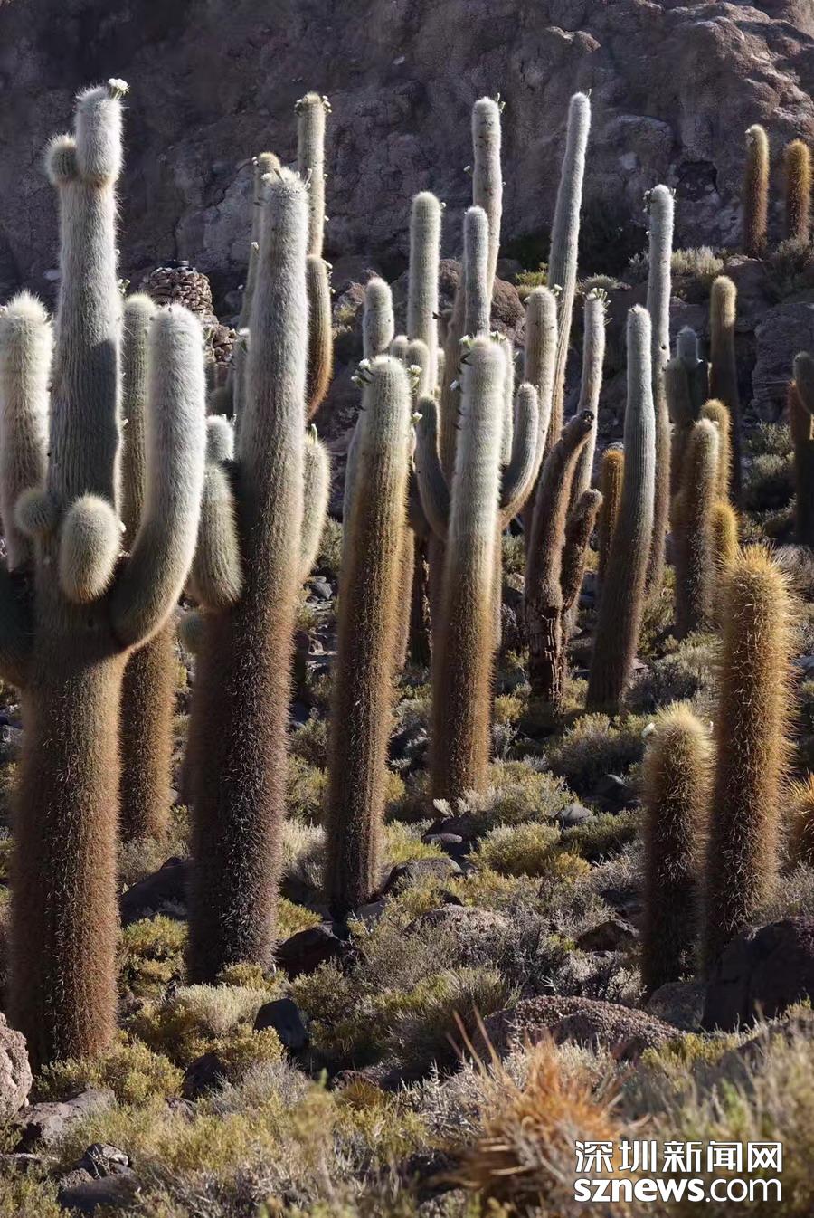 深圳新聞網(wǎng)訊 烏尤尼鹽沼中,有一個(gè)孤立的小山頭,猶如瀚海中的小島。島上長滿巨大的仙人柱,據(jù)說有的已經(jīng)生長了上千年。這種形狀各異、耐鹽堿、耐干旱的熱帶植物豐富了鹽沼的風(fēng)光,構(gòu)成絕無僅有的世界奇觀。 李仁奇 攝