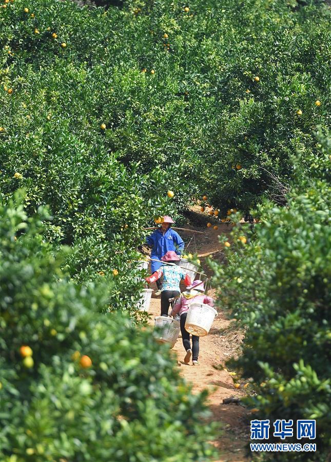 近日,江西省贛州市尋烏縣近20萬(wàn)畝果園進(jìn)入豐收采摘期,當(dāng)?shù)毓r(nóng)抓住晴好天氣開(kāi)始采摘臍橙,果園一派繁忙景象。新華社記者 萬(wàn)象 攝