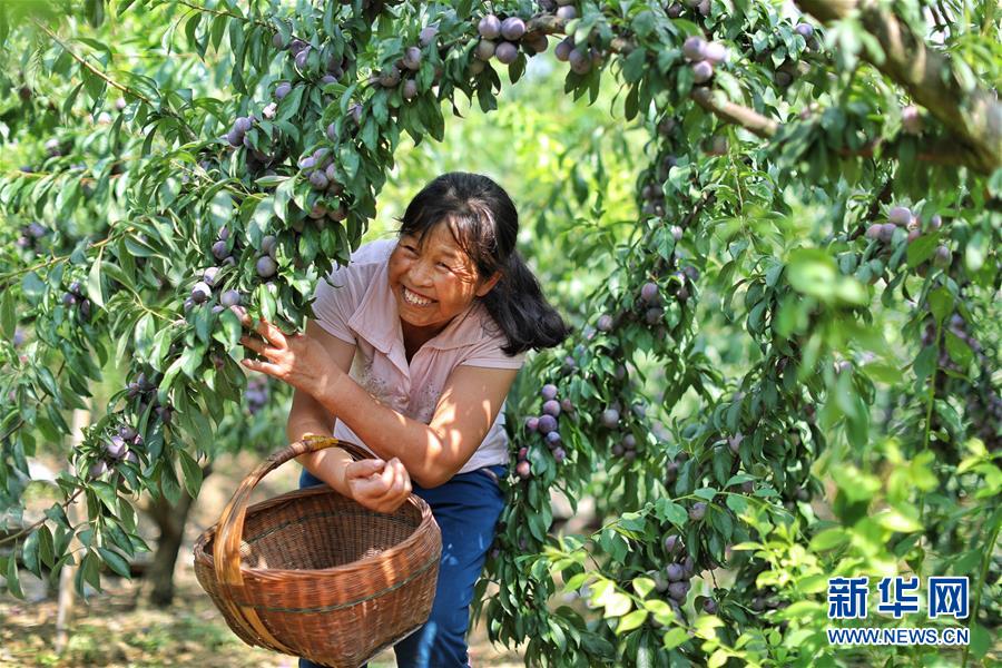 8月12日,平正鄉(xiāng)紅心村的一名果農(nóng)在采摘李子。 新華社記者 劉續(xù) 攝