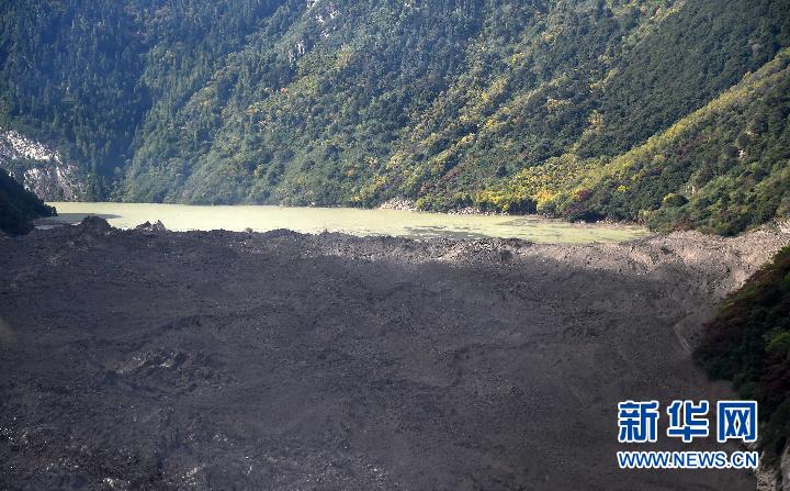 雅魯藏布江上的堰塞湖和堰塞體(10月18日攝)。 新華社記者 覺(jué)果攝