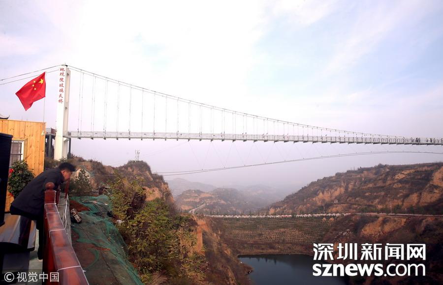 深圳新聞網(wǎng)訊 河南三門峽,位于陜州地坑院景區(qū)玻璃天橋。該項目橋梁總投資2600萬元,全長368米,寬3米,高108米,是目前河南省內(nèi)最長的玻璃天橋,還將陸續(xù)對外開放夜景效果、聲光效果以及更多的體驗效果,逐步打造成整個豫西地區(qū)乃至全省的旅游打卡新地標。