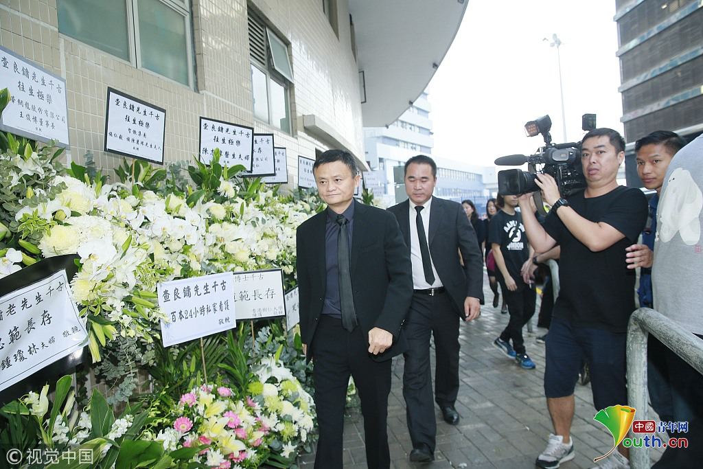 香港,已故著名武俠小說家金庸(查良鏞)香港設靈。圖為馬云現(xiàn)身致哀。圖片作者:null