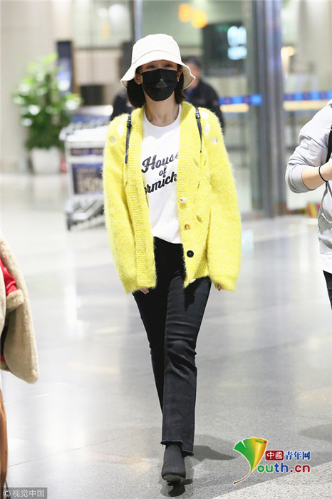 日前,楊紫現(xiàn)身長沙黃花機場,她頭戴漁夫帽的她口罩遮面,身著鮮黃針織衫相當(dāng)搶眼,一路獲粉絲跟拍。