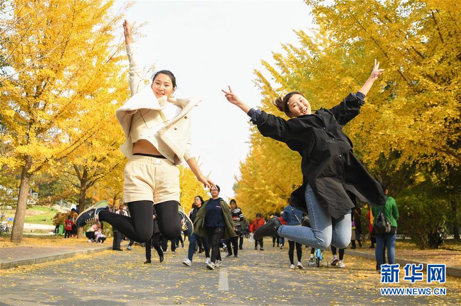 近日,沈陽農(nóng)業(yè)大學內的銀杏樹進入最佳觀賞期,長達一千余米的金色“銀杏路”吸引了許多市民前去游覽,拍照。 新華社記者龍雷攝