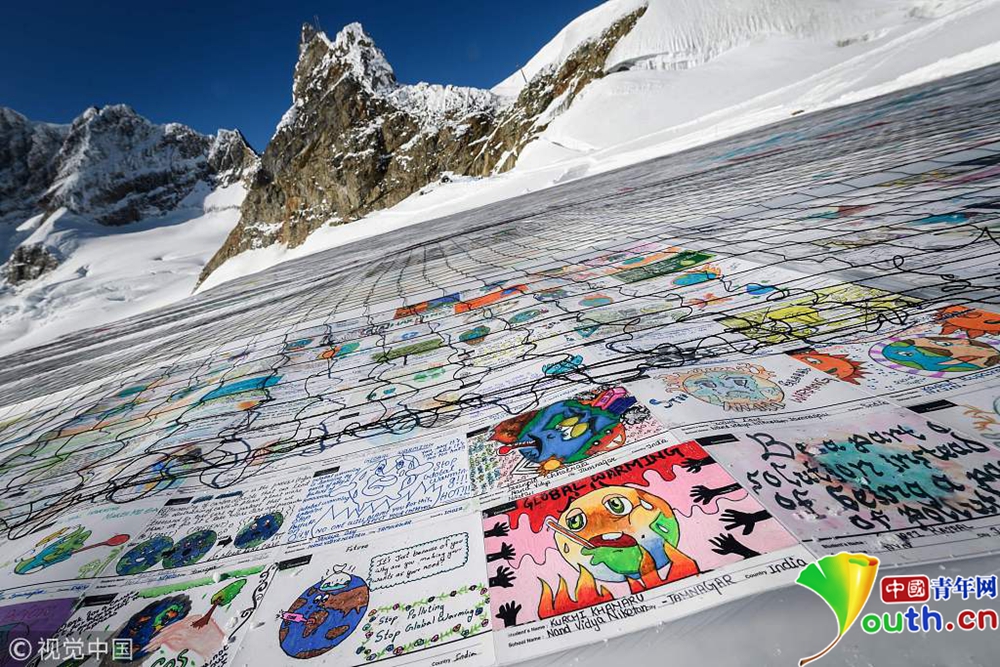 “少女峰”上展示的十萬多張明信片,呼吁關注氣候變暖。