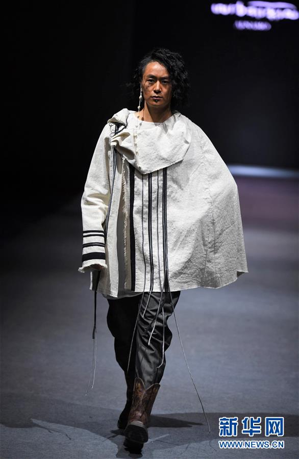 模特在AJ-NAMO藏裝秀上展示藏族設(shè)計師阿佳娜姆設(shè)計的時裝(11月18日攝)。 新華社記者 普布扎西攝