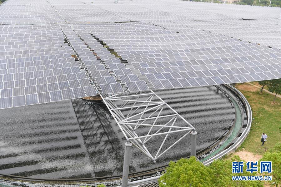 這是11月20日拍攝的福建省石獅市中心區(qū)城市污水處理廠處理池上的分布式光伏發(fā)電項(xiàng)目。 新華社記者 宋為偉 攝