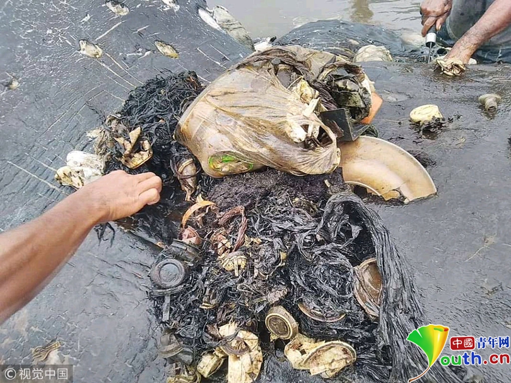 鯨魚擱淺印尼海岸 肚子里滿是塑料垃圾