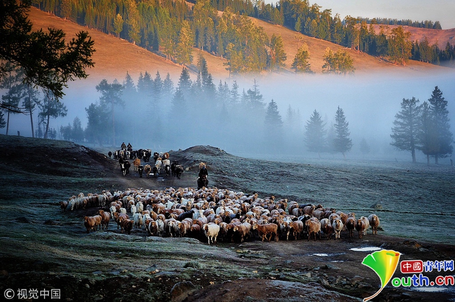 新疆阿勒泰天氣轉(zhuǎn)冷 牧民收拾行囊準(zhǔn)備遷徙