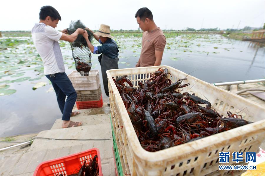 5月23日,在南昌市新建區(qū)象山鎮(zhèn)河林村,當地農戶將捕獲的小龍蝦搬運上岸裝箱。近日,江西省南昌市新建區(qū)1.7萬畝水域養(yǎng)殖小龍蝦喜獲豐收,當地農戶紛紛將鮮活的小龍蝦捕獲上岸,裝箱外銷。據了解,近年來,南昌市新建區(qū)發(fā)揮轄區(qū)內河道縱橫,水田眾多的優(yōu)勢,支持鼓勵農戶發(fā)展小龍蝦養(yǎng)殖業(yè),為當地農戶開辟了一條特色養(yǎng)殖的致富之路。新華社記者彭昭之 攝