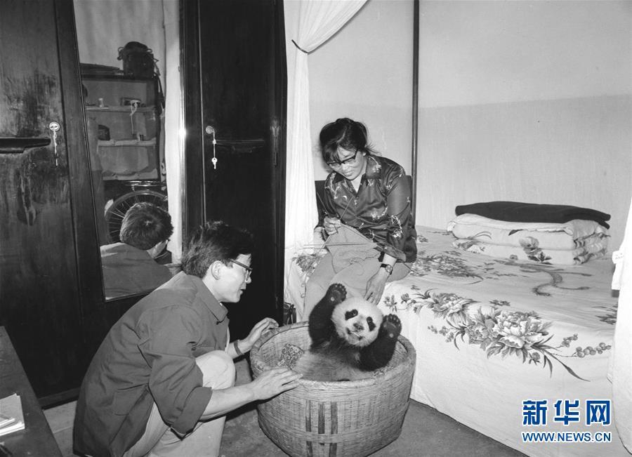 新華社記者金勖琪1984年拍攝的四川平武縣林業(yè)局的助理工程師鐘肇敏(左)一家把一頭受病餓威脅的熊貓幼仔“龍龍”收留在家里精心喂養(yǎng)。大熊貓,古老的物種,世界級(jí)“萌寵”。有一位84歲的老人,四十年前曾身挎相機(jī)與熊貓親密接觸六年多,公開(kāi)發(fā)表了一千多張熊貓照片,把熊貓介紹給全球的讀者,被國(guó)內(nèi)外的朋友親切地稱為“熊貓小姐”。她就是金勖琪,新華社第一代熊貓攝影師。新華社記者 張超群 攝