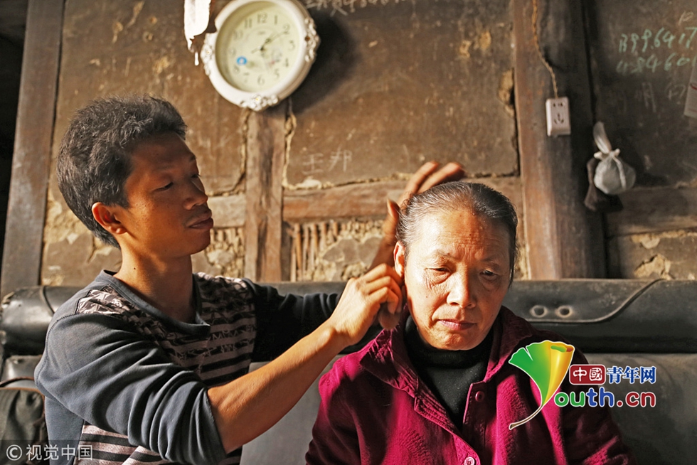 37歲的王顯強(qiáng),家在重慶市綦江區(qū)永新鎮(zhèn)伏牛村。23年前,王顯強(qiáng)的母親田井貴意外摔倒導(dǎo)致全身癱瘓,吃喝拉撒全由王顯強(qiáng)的父親照顧。2003年,王顯強(qiáng)的父親去世,深受打擊的田井貴從此開始不再和外人說話。“我媽就是我的全部!”原本在浙江打工的王顯強(qiáng)回到家里,為了養(yǎng)活自己和母親,他決定背著母親到重慶主城打工。從此,身材不高的王顯強(qiáng),用自己不算厚實(shí)的后背,讓母親有了新的依靠。