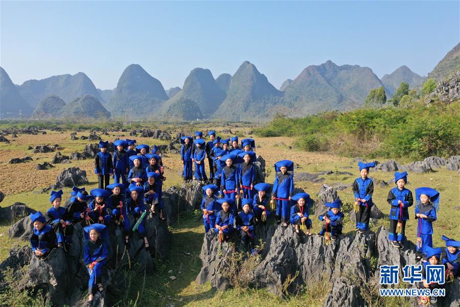 廣西百色靖西市安德鎮(zhèn)中心小學(xué)的孩子們?cè)谂啪毶礁瑁?1月28日無人機(jī)拍攝)。 新華社記者 周華攝