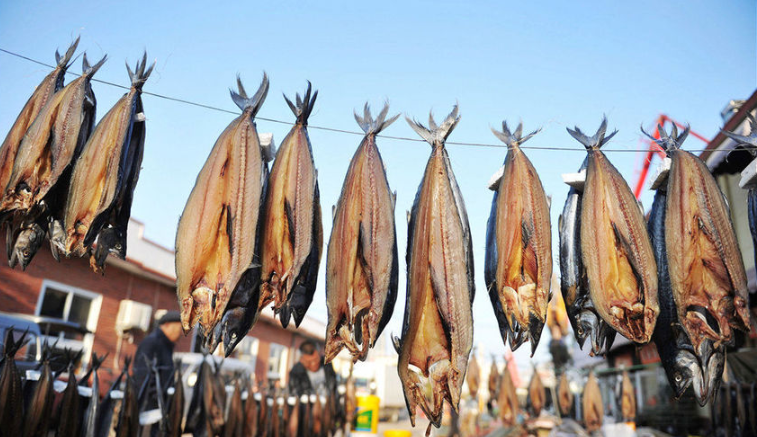 青島:初冬時(shí)節(jié)晾曬魚干成一景