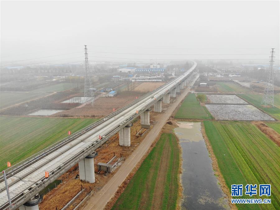 12月2日拍攝的魯南高鐵山東臨沂段(無(wú)人機(jī)拍攝)。