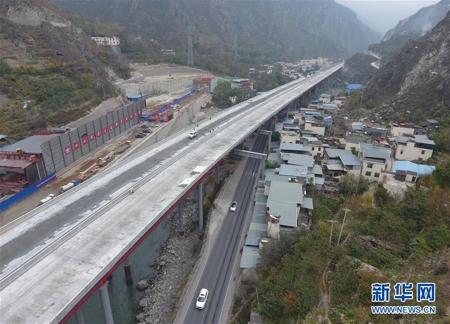 這是11月3日拍攝的合龍前的克枯大橋。 當(dāng)日,位于四川省阿壩藏族羌族自治州的汶(川)馬(爾康)高速的控制性工程克枯大橋合龍。 新華社記者 劉坤 攝