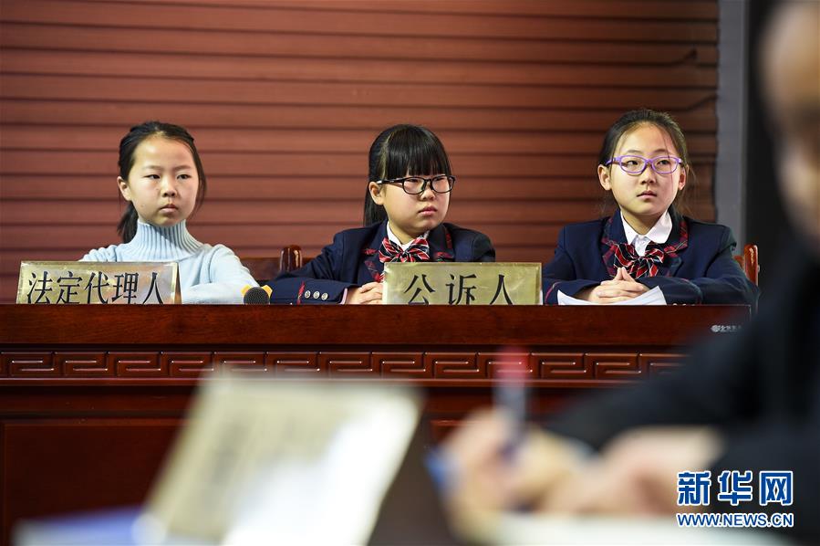 12月3日,銀川市實(shí)驗(yàn)小學(xué)的學(xué)生在憲法日主題活動(dòng)中體驗(yàn)?zāi)M法庭。國(guó)家憲法日到來(lái)之際,各地學(xué)校紛紛舉辦主題宣講活動(dòng),對(duì)學(xué)生開展法治教育,幫助孩子們了解憲法知識(shí)。新華社發(fā)(馮開華 攝)