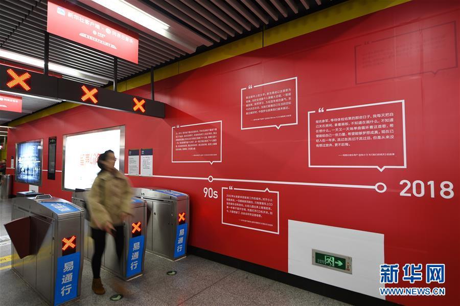 12月3日,在北京地鐵4號(hào)線宣武門(mén)站,乘客經(jīng)過(guò)音樂(lè)主題影像展展出的音樂(lè)故事。 在慶祝改革開(kāi)放40周年之際,當(dāng)日,新華社客戶(hù)端聯(lián)合網(wǎng)易云音樂(lè)在北京地鐵4號(hào)線宣武門(mén)站和杭州地鐵1號(hào)線定安路站,舉辦主題為“留聲40年:那些改變你我的故事”音樂(lè)主題影像展。同時(shí),兩列滿(mǎn)載著“音樂(lè)故事”的留聲專(zhuān)列也開(kāi)始在北京地鐵4號(hào)線、大興線及杭州地鐵1號(hào)線上開(kāi)出。 音樂(lè)主題影像展通過(guò)中國(guó)照片檔案館珍貴的歷史照片,展示40年來(lái)中國(guó)音樂(lè)的發(fā)展歷程以及音樂(lè)給人們生活帶來(lái)的改變。 新華社記者 鞠煥宗 攝