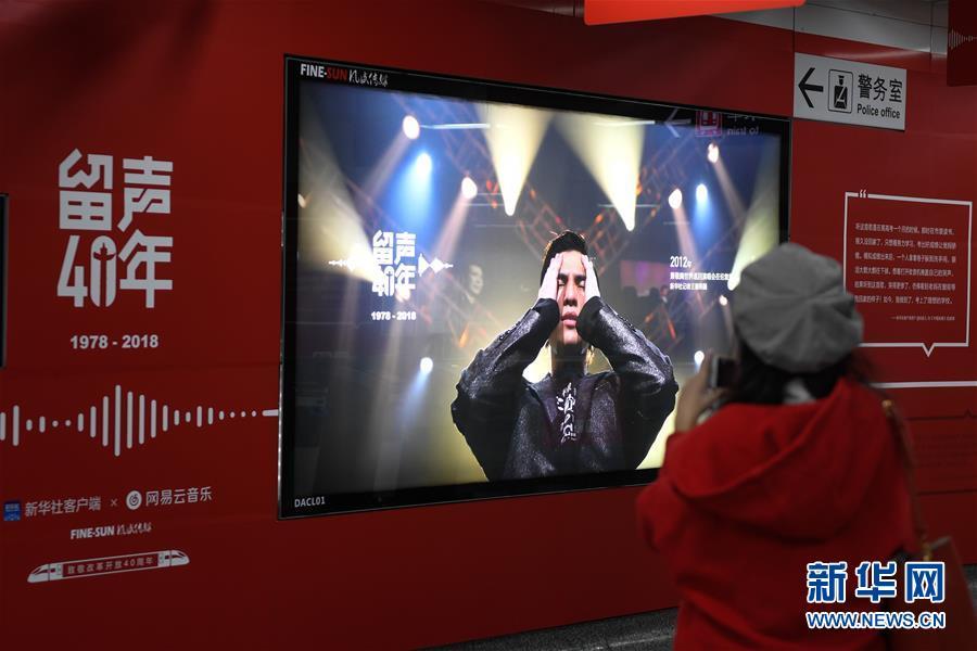 12月3日,在北京地鐵4號(hào)線宣武門(mén)站,一名乘客觀看音樂(lè)主題影像展展出的海報(bào)。 在慶祝改革開(kāi)放40周年之際,當(dāng)日,新華社客戶(hù)端聯(lián)合網(wǎng)易云音樂(lè)在北京地鐵4號(hào)線宣武門(mén)站和杭州地鐵1號(hào)線定安路站,舉辦主題為“留聲40年:那些改變你我的故事”音樂(lè)主題影像展。同時(shí),兩列滿(mǎn)載著“音樂(lè)故事”的留聲專(zhuān)列也開(kāi)始在北京地鐵4號(hào)線、大興線及杭州地鐵1號(hào)線上開(kāi)出。 音樂(lè)主題影像展通過(guò)中國(guó)照片檔案館珍貴的歷史照片,展示40年來(lái)中國(guó)音樂(lè)的發(fā)展歷程以及音樂(lè)給人們生活帶來(lái)的改變。 新華社記者 鞠煥宗 攝