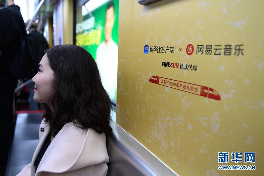 12月3日,乘客乘坐北京地鐵4號(hào)線留聲專(zhuān)列。 在慶祝改革開(kāi)放40周年之際,當(dāng)日,新華社客戶(hù)端聯(lián)合網(wǎng)易云音樂(lè)在北京地鐵4號(hào)線宣武門(mén)站和杭州地鐵1號(hào)線定安路站,舉辦主題為“留聲40年:那些改變你我的故事”音樂(lè)主題影像展。同時(shí),兩列滿(mǎn)載著“音樂(lè)故事”的留聲專(zhuān)列也開(kāi)始在北京地鐵4號(hào)線、大興線及杭州地鐵1號(hào)線上開(kāi)出。 音樂(lè)主題影像展通過(guò)中國(guó)照片檔案館珍貴的歷史照片,展示40年來(lái)中國(guó)音樂(lè)的發(fā)展歷程以及音樂(lè)給人們生活帶來(lái)的改變。 新華社記者 鞠煥宗 攝