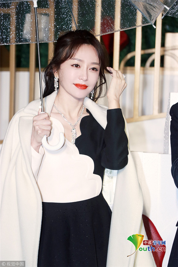 秦嵐撐傘雪膚紅唇美如畫 優(yōu)雅品香檳 ...