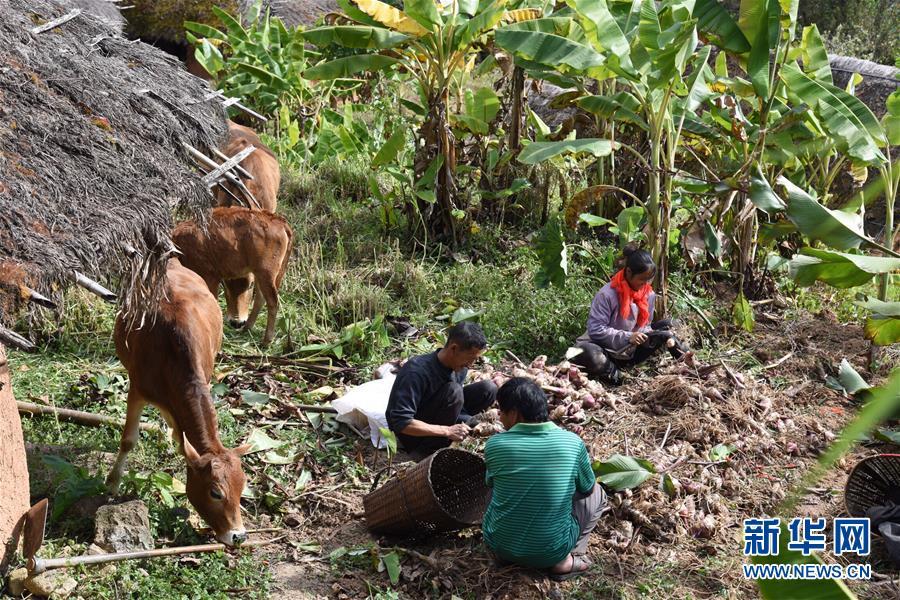 12月3日,在云南省瀾滄拉祜族自治縣南嶺鄉(xiāng)勐炳村龍?zhí)独险迕裨诎沤兜乩镒鲛r活。 新華社記者張瑞琪攝