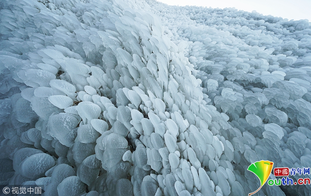 瀑布在零下12攝氏度的氣溫下結(jié)冰。圖片來(lái)源:視覺(jué)中國(guó)