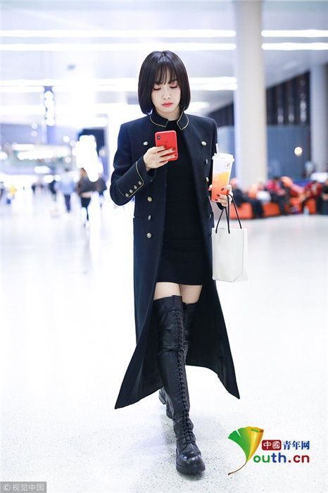 2018年12月6日,宋茜現(xiàn)身機場,從上海飛往北京。她換了時髦的新發(fā)型,身穿黑色短裙外塔長款風衣,配上一雙高筒靴,美腿隱現(xiàn)霸氣不失性感,半路獲粉絲送卡片翻來覆去認真品讀。